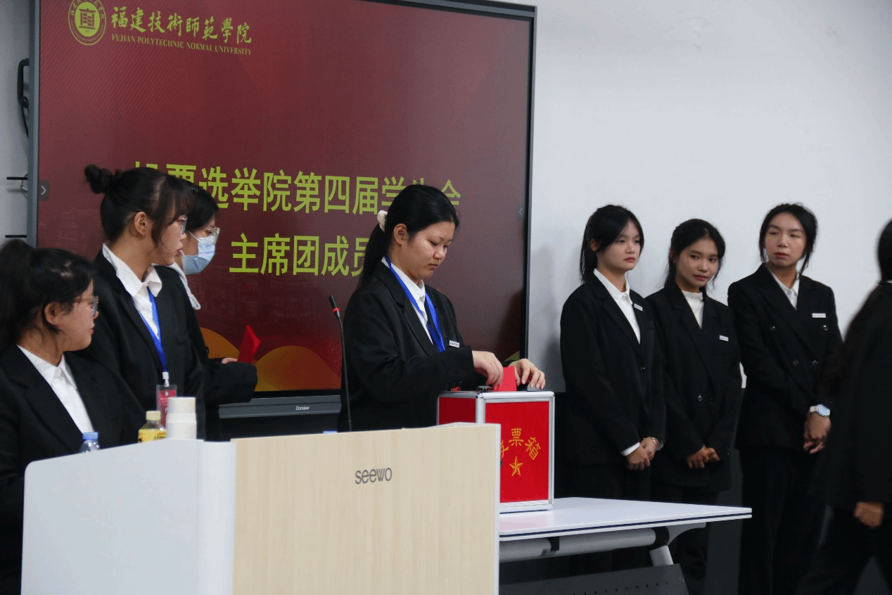 大会听取和审议了上一届学生会的工作报告,审议并通过了《院第四次学生代表大会监票人、计票人名单(草案)》《院第四届学生会主席团候选人名单(草案)》《院第四次学生代表大会选举办法(草案)》。学生代表们投出选票,监票人、计票人当场计票和唱票,最终选举产生新一届学生会主席团。大会在激昂的共青团团歌中落下帷幕。