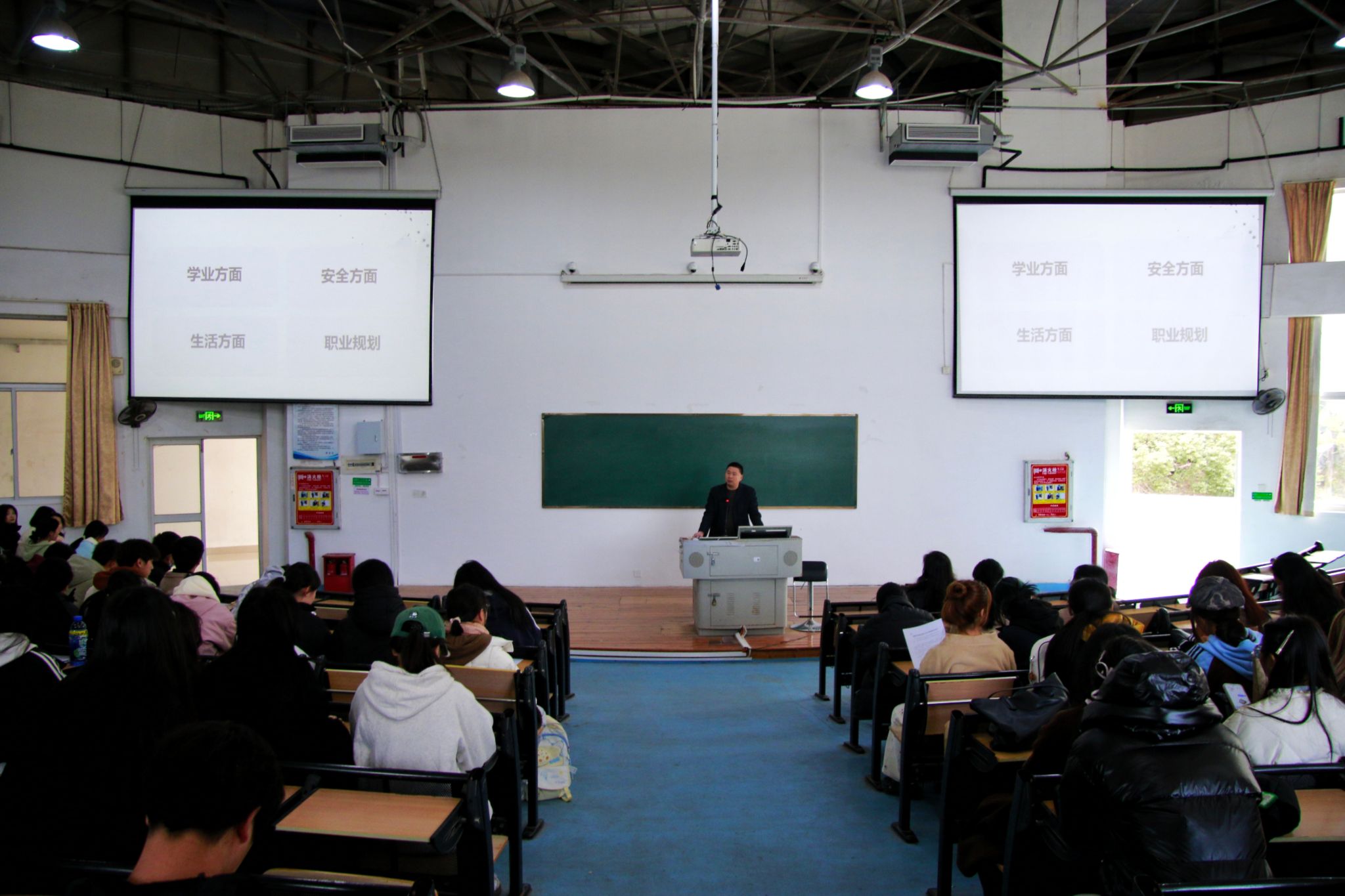 侯利军副书记从学业、生活、安全与职业规划四个方面展开,他首先强调了期末考试的重要性,重申了考试纪律,要求同学们坚守诚信,展现真实学术水平,为学术道路打下诚信基石;通过实例讲解人身健康、心理安全、网络安全及消防安全知识,增强同学们的防范意识;围绕提升同学们的消防安全意识,预防冬季校园火灾进行了强调,提醒同学们时刻提高防火、防电的安全意识,预防火灾的发生;针对职业规划,侯利军副书记结合当前就业形势,提供了科学规划职业生涯的建议,鼓励学生提升职业素养与就业竞争力。