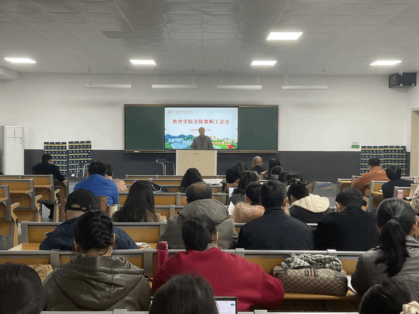 12月24日下午,我院于弘毅苑102召开教职工大会、就业创业工作教师动员会暨领导班子述职述责述廉会议。会议由学院党委副书记(主持工作)倪秉东主持,全体教职工参加。