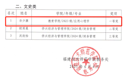 教育学院一直以来注重学生综合素质的培养,鼓励学生积极参与各类学科竞赛,以赛促学,以学促用。孙少康同学此次获奖,不仅展现了他个人的数学才华和努力,也体现了教育学院在学科竞赛指导和学生培养方面的显著成效。