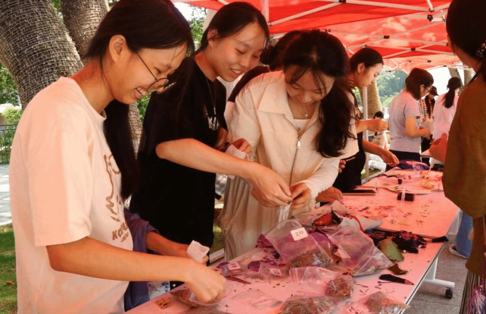 帆布包涂鸦馆:师生们捡拾校园落叶,用传统拓印技艺创作独一无二的环保潮包。