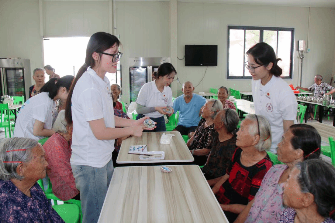 针对村民夏季健康需求,家政学团队以《黄帝内经》“治未病”为纲,在岱南村党群服务中心开展“夏养身心·四季进补”活动。学生手把手教老人制作艾草驱蚊包,同步讲解防蚊防暑知识;谢佳琛、游欣怡用闽南语解读《中国居民平衡膳食宝塔(2022)》,结合本地时令食材设计清凉食谱,穿插情景互动。活动将足浴养生、膳食指导等文明行为融合,林阿婆点赞:“闻着艾草香学养生知识,用家乡话听饮食指南,这夏天过得又健康又舒心!”