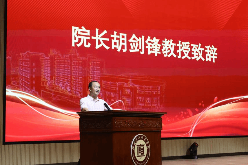 胡剑锋副院长在致辞中代表全院师生对新生们的到来表示热烈欢迎。他以“从一个普通人做起”为主题,指出新生们大多属于“中位数人群”,但普通人也可以取得非凡的成就。他通过毛泽东、曾国藩等例子鼓励新生们不要躺平,并提出了“多读书、多尝试、多交流”的三点建议,希望同学们在大学四年从普通走向非凡。