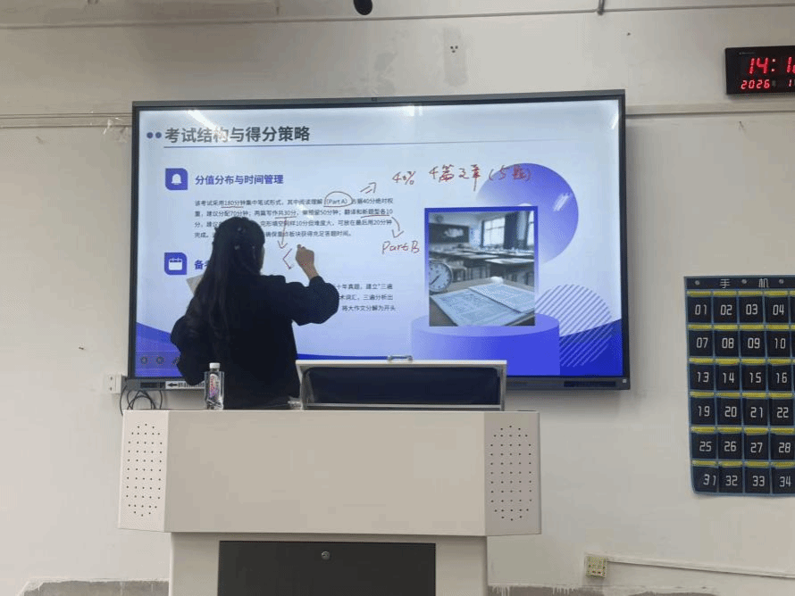 为助力学生明确升学路径、提升学术英语能力,我院于1月5日组织开展特色学术讲座活动。本次讲座特邀杨旸衎博士担任主讲,杨博士围绕“考研英语(一)与雅思考试:核心解析与备考攻略”主题,为学院全体学生带来一场内容丰富、针对性强的备考指导。