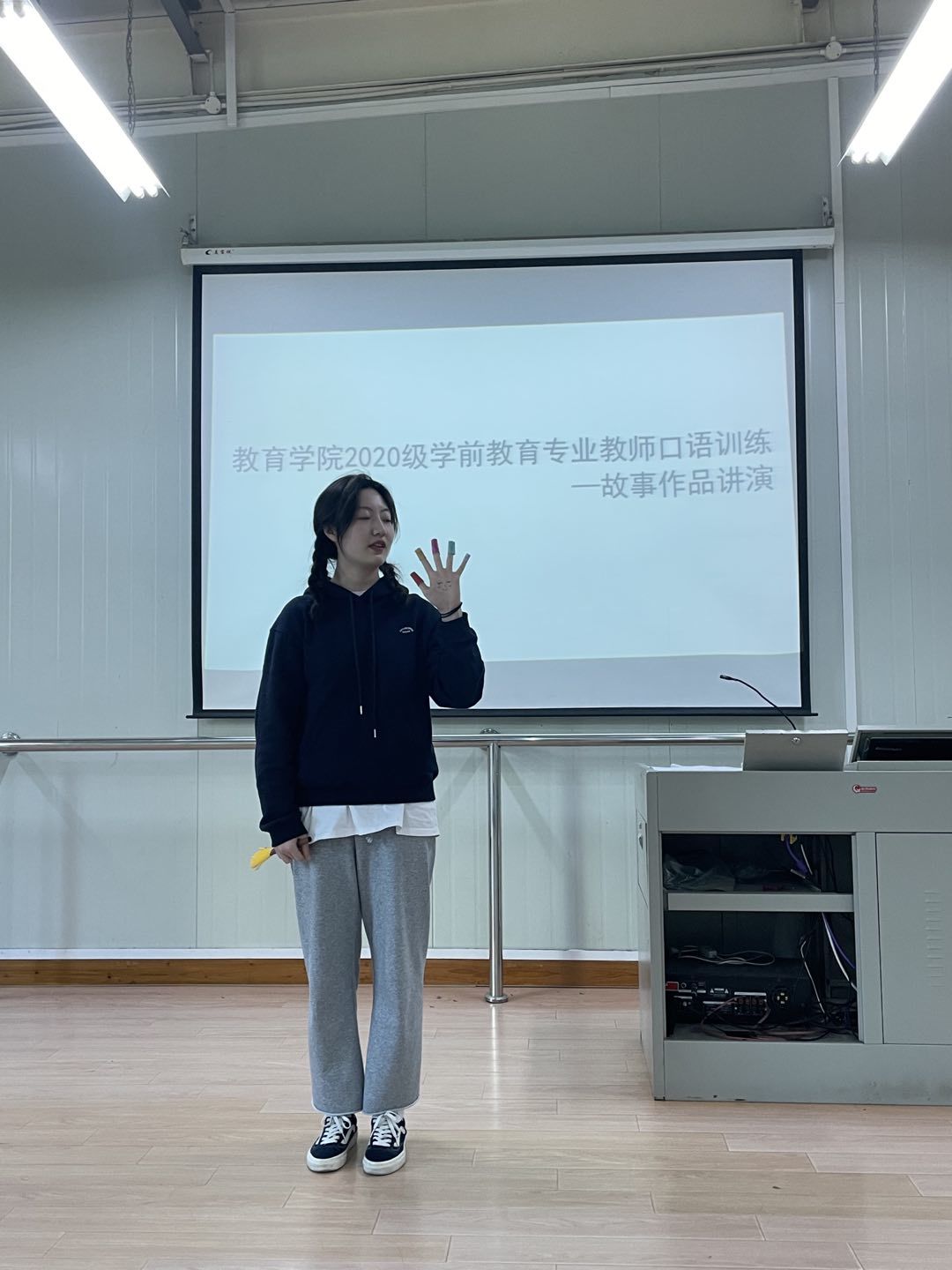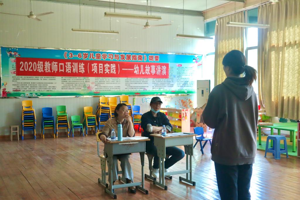 5月18日下午于,在石竹校区今是楼,我院组织学前教育专业2020级全体112名学生参加了故事讲演的项目考核。考核分为4个小组同时进行,学前教育专任教师进行现场打分。每位学生依次进行现场故事抽选、准备、展示,最后接受评委老师的提问。