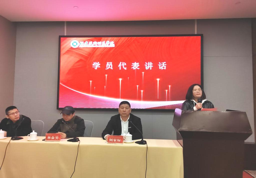 学员代表发言,她对学校给予培训支持以及辛勤付出的领导、老师们表示衷心感谢,定将以空杯心态,珍惜机会,认真学习,为福建职业教育做出贡献。