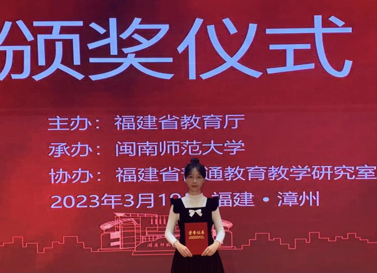 据悉,福建省高校师范生教学技能大赛是省内规模最大、影响最广的师范生教学技能竞赛,旨在培养“四有”好老师,深化师范专业课程和人才培养模式改革,强化师范类职业能力培养,助力福建基础教育实现高质量发展。本次比赛秉承公平、公正、公开的原则,设置“教学设计”、“模拟课堂教学”和“专家提问”三个环节,综合考察参赛选手的专业理论知识、教育实践智慧和语言表达能力。赛事举办以来,我院学子郑灵琪同学在指导教师们的悉心指导下,精心备赛、沉着应战,通过稳定发挥取得了可喜成绩,为我院争得了荣誉,充分展示了我院学子扎实的教学基本功和良好的精神风貌,体现了我院的教学服务水平和师范专业人才培养成效。