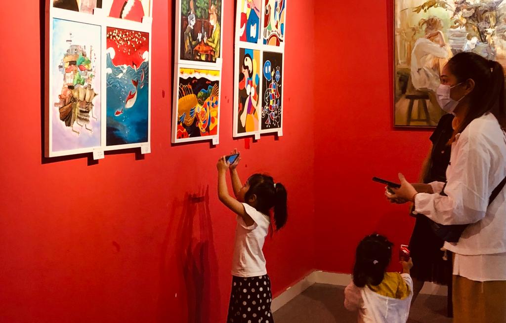 本次展出的58幅作品,均来自我院学前教育专业2019级学生的课堂习作,以及部分教师的作品,种类涉及国画、油画、水彩、粉画、综合材料等。师生用手中的画笔,向社会集中展示美术教学成果,同声表达对中国共产党的热爱,共庆中国共产党成立100周年。