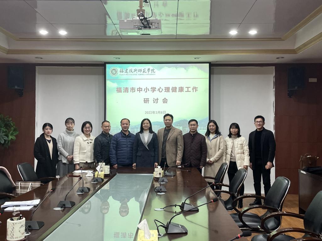 3月8日下午,福清市教师进修学校培训处何元基主任一行来我院考察交流,我院陈妮娅院长、胡剑锋副院长、心理学专业主任及相关教师参加了研讨会。