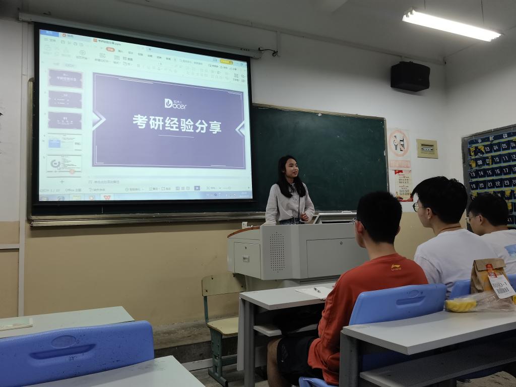 为了助力即将考研的2019级同学做好充分的迎考准备,加强对考研知识和经验的了解,2022年4月25日晚,在教学楼J1-206,我院特邀考取福建师范大学的我院2021届优秀毕业生林喆芝作考研经验分享。