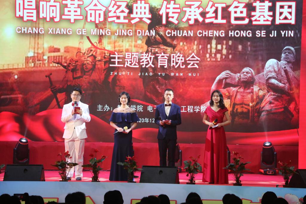 12月30日晚7:00,我院和电子与信息工程学院联袂举办的“唱响革命经典,传承红色基因”主题教育晚会在石竹山校区学生活动中心拉开帷幕,并同时在爱奇艺“四边形”栏目进行全程直播。现场九百个位置座无虚席,晚会也吸引了一千多人在线观看。