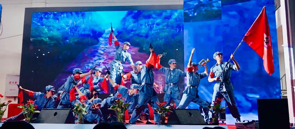 晚会在全场奏唱国歌中拉开序幕。气势磅礴的开场舞《飞夺泸定桥》一下子吸引了观众的眼球,随后精彩纷呈的节目不断引爆热烈掌声。《映山红》、《毛泽东诗词朗诵》、《沂蒙颂》、《英雄赞歌》、《山丹丹开花红艳艳》、《红歌竞猜》、《国家》、《恰同学少年,铭记党史,绽放风华》、《万泉河水清又清》、《走过峥嵘岁月》、《打靶归来》、《草原女兵》、《歌唱二小放牛郎》、《我爱你中国》等节目仿佛将观众带入到战火纷飞的革命年代,整整两个小时的演出让观众浸泡在中国共产党革命历史进程中,集体接受了一次红色精神的洗礼。晚会在全场高唱《没有共产党就没有新中国》的歌声中圆满落下帷幕。
