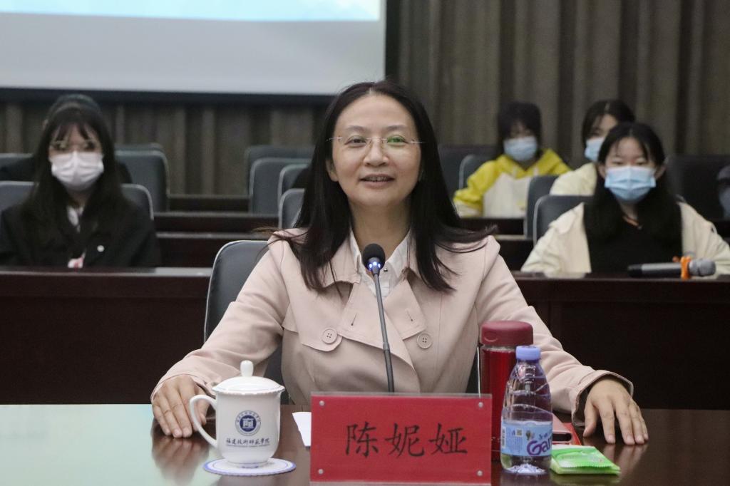 陈妮娅从学院办学历史、教学师资、专业建设情况等做了简要介绍,强调了家政学专业作为全省唯一一个家政学专业,全国唯一一个家政学师范专业,承担福建省家庭服务业提质扩容的历史使命,引导同学们全方位多角度的认识专业,提升对家政专业的使命感和荣誉感。