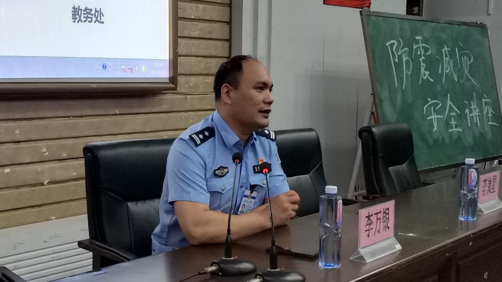 讲座伊始,李万银中队长首先阐明防灾减灾的重要性,并通过身边的事例加以说明。随后李岚星警官从防灾减灾是什么,常见的自然灾害有哪些,灾害来临怎么办,生活中如何防灾等四个方面进行详细讲解。最后,李岚星警官根据学生实际,结合自身工作经验,提醒同学们除了注意自然灾害外,更重要的是要注意人为灾害,着重跟同学们强调了电信诈骗、交通安全、毒品以及消防安全等注意事项。