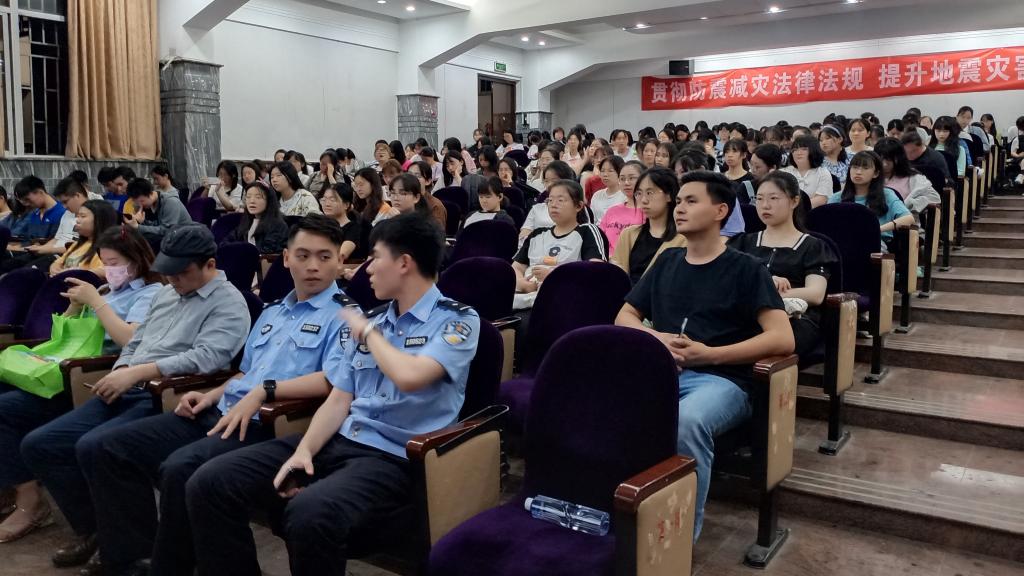 5月18日晚上,我院邀请宏路派出所李万银中队长、李岚星警官在石竹学术报告厅为我院学生作“防灾减灾”专题讲座。院党委书记林俞男出席活动,学院辅导员和全体同学参加讲座。