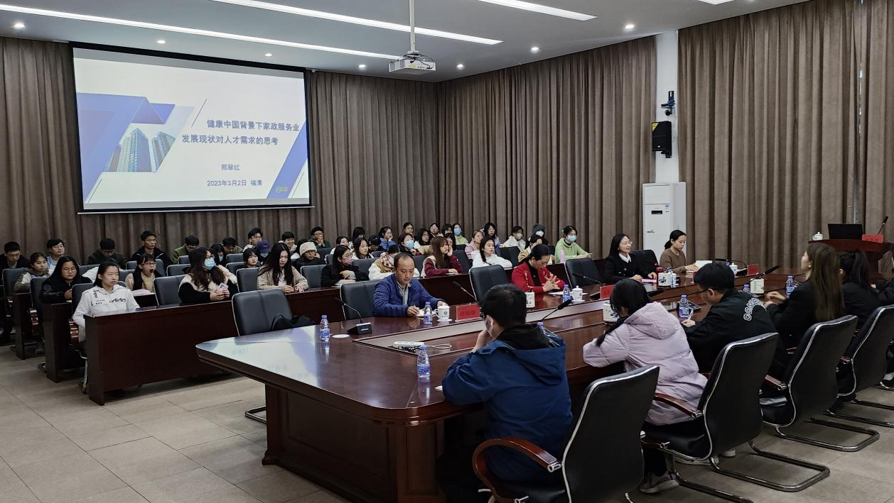 3月2日,我院邀请了福建卫生职业技术学院郑翠红教授作《健康中国背景下家政服务业发展现状对人才需求的思考》专题讲座。院长陈妮娅、副院长胡剑锋及家政学专业全体师生参加本次讲座。