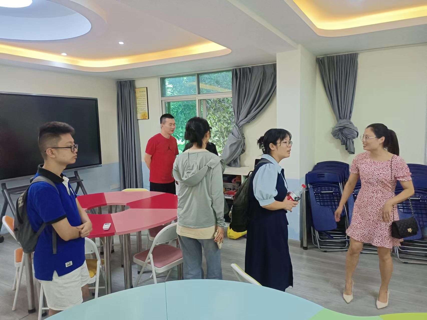 江校长简要介绍了附属校办学历史和特色,强调心理健康教育在三全育人中的重要性,对实习工作进行总体部署,并对实习生提出殷切期望。蒋怀滨教授代表我院感谢附属校给予的平台支持和实践资源,对实习生们即将开展的实习工作提出了明确的要求:遵守学校的规章制度,虚心向指导教师学习,认真开展教学活动,完成教学任务,把所学理论与实践教学有机结合,赋能职校生积极心理发展。他为实习生们送上寄语:“实践促成长,筑梦向未来。相信实习生们能够在实习岗位上脚踏实地,积攒力量,行而不辍,未来可期。” 会后,附属校心理发展与教育中心主任林超,引导师生共同参观了心理健康教育工作室,并介绍了附属校心理健康教育日常工作和相关活动。