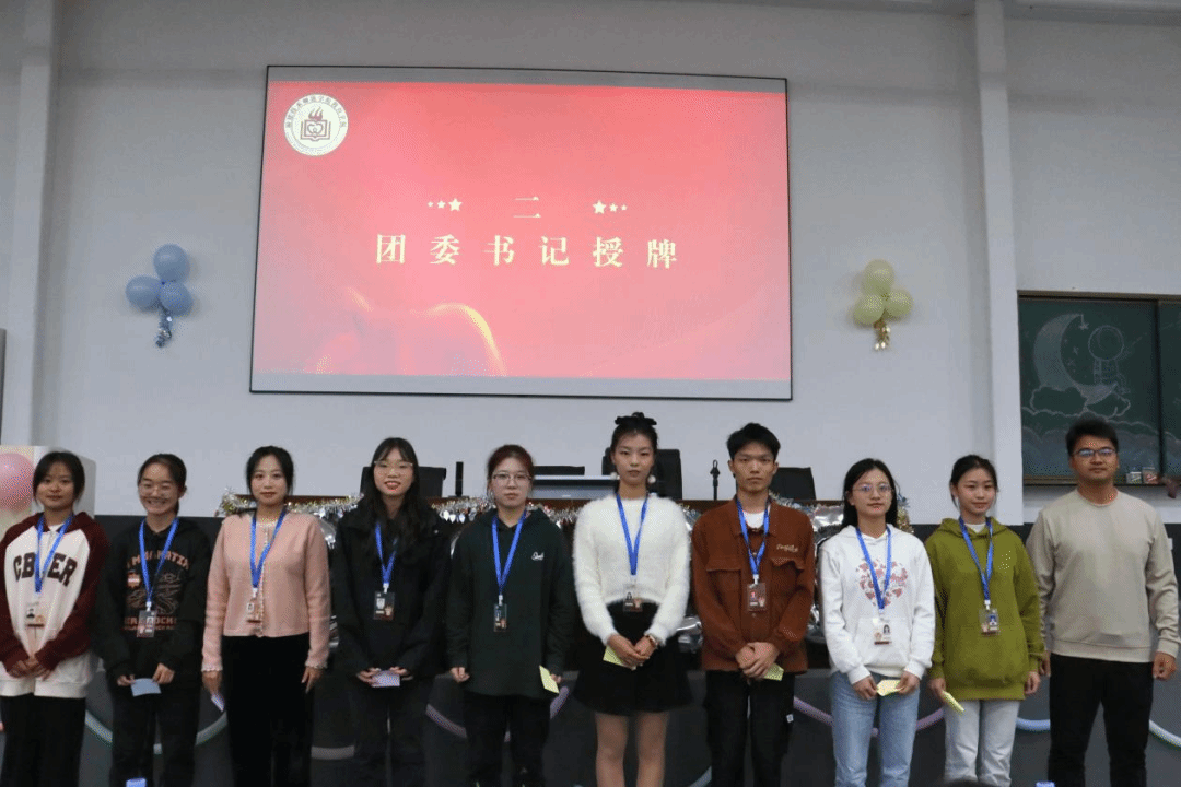 会议表彰了在校第36届田径运动会中表现突出的先进个人名单,在场的各位领导老师依次为他们颁发“文体贡献奖”并合影留念。会议还进行了团学干部授牌仪式。运动员代表李彩玲、团体操代表蓝莉华、新老团学干部代表杨梦婷和戴靖雯依次上台作交流发言。