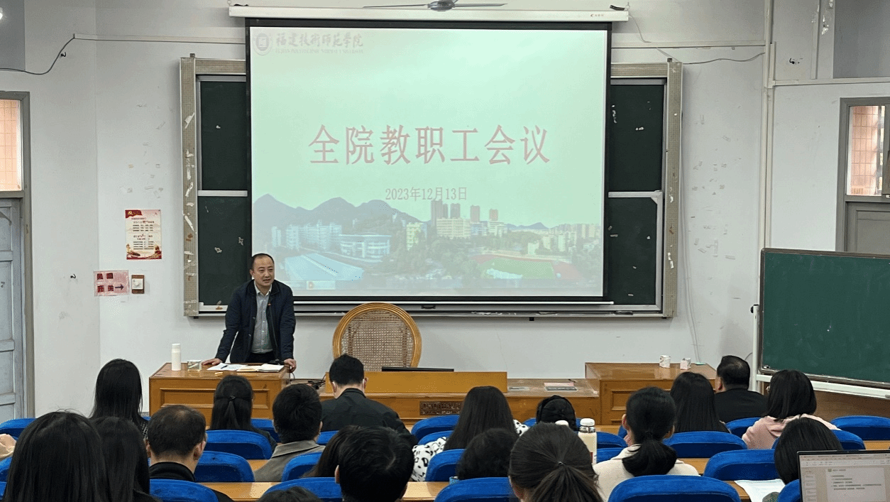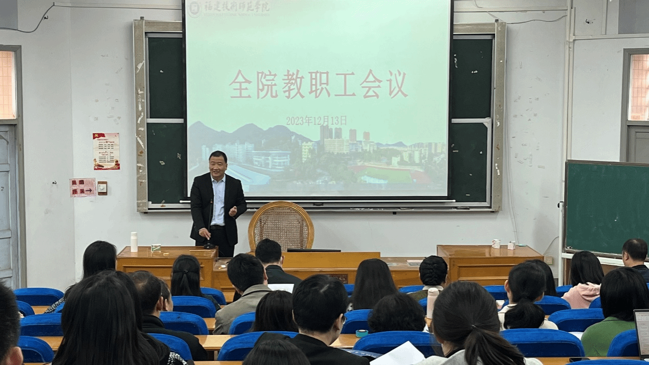 12月13日下午,我院在五马校区教学楼201教室召开了全院会议,全体教职工参加了本次会议。会议由院党委副书记郑向峰主持。