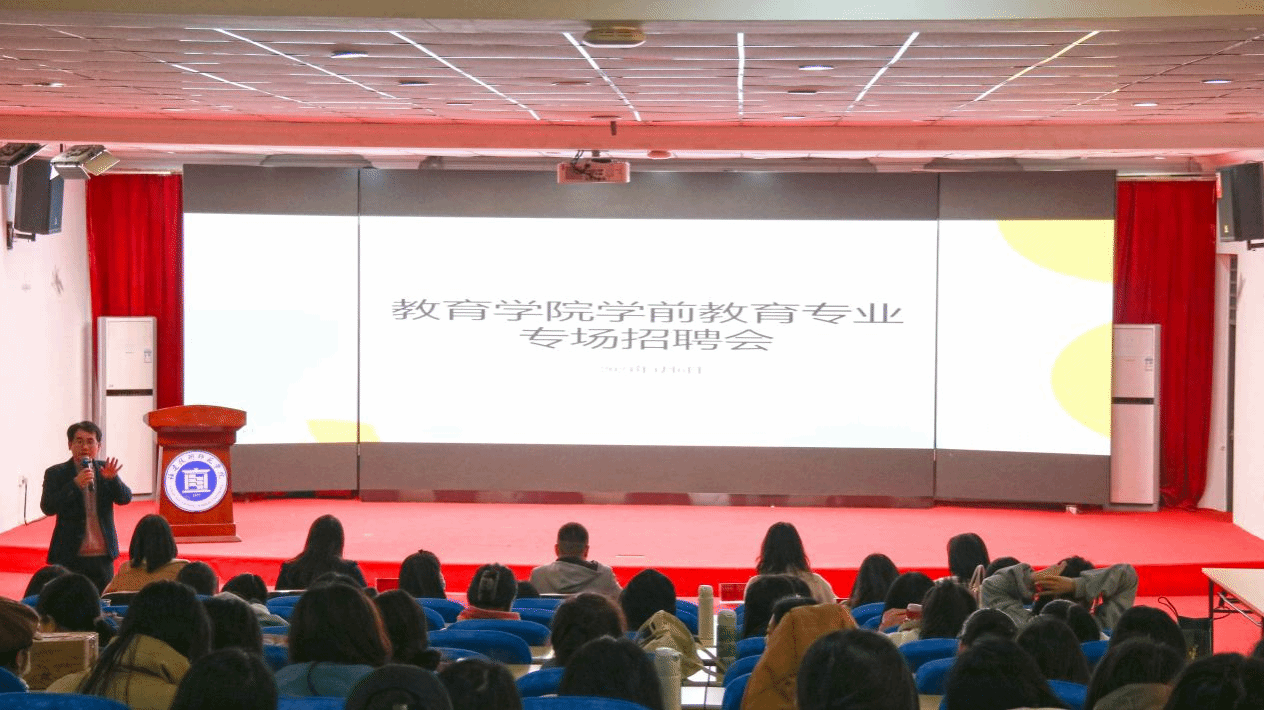 会后,相关单位在科学楼金泰学术报告厅举行了学前教育专业专场招聘宣讲会。现场,毕业生们热情高涨,主动与用人单位就岗位需求、工作内容、薪资待遇、发展空间等方面进行充分交流,积极投递简历。