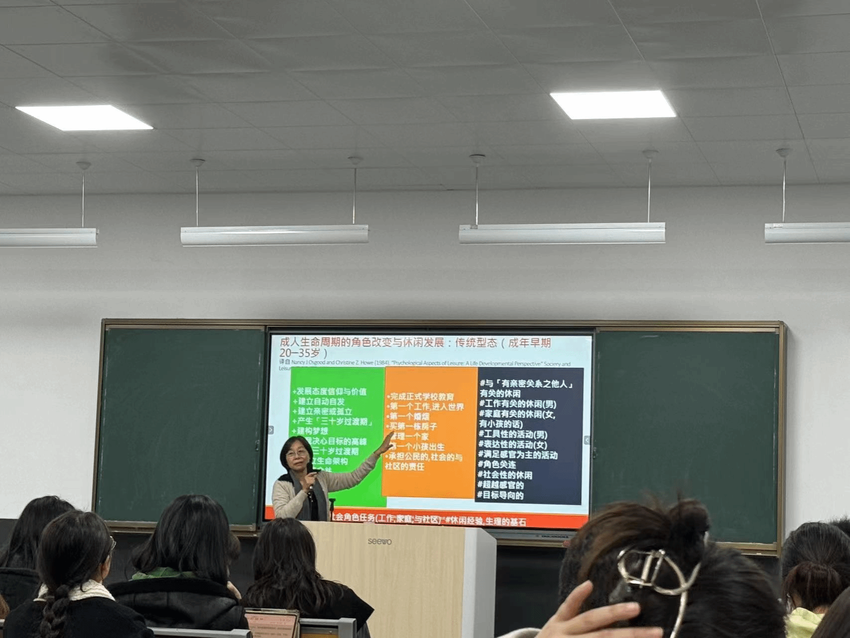余嫔教授从人的生命发展周期开始,结合家庭生命周期,详细阐述了家庭休闲在不同生命阶段中的作用和影响。余教授还通过丰富的家庭休闲产业与服务案例,拓展了同学们对家庭休闲的认识,感知家庭休闲产业的发展状况,进一步引导同学们理解从事家庭休闲事业需要具备的核心能力。讲座尾声,余嫔教授细心地解答了同学们的各种提问,鼓励大家结合自己专业所学,探讨家庭休闲产业的更多可能性。