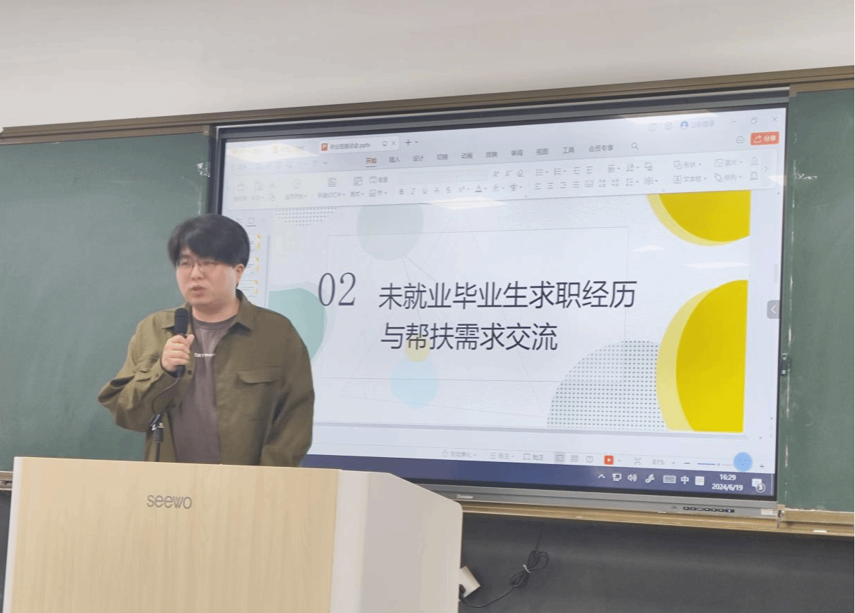 未就业毕业生代表首先介绍了自身就业现状、就业意向和求职需求。已就业毕业生代表结合自身求职经历分享了岗位选择、面试技巧、求职压力缓解等方面的宝贵经验,并提出专业建设建议。参会的专任教师们就典型案例作出分析,为毕业生们作诚恳的行前忠告。专业负责人寄语未就业毕业生,鼓励大家广泛寻求就业机会、积极提升个人竞争力。毕业班辅导员也围绕就业政策、应届生身份认定条件、签约形式等问题进行指导。