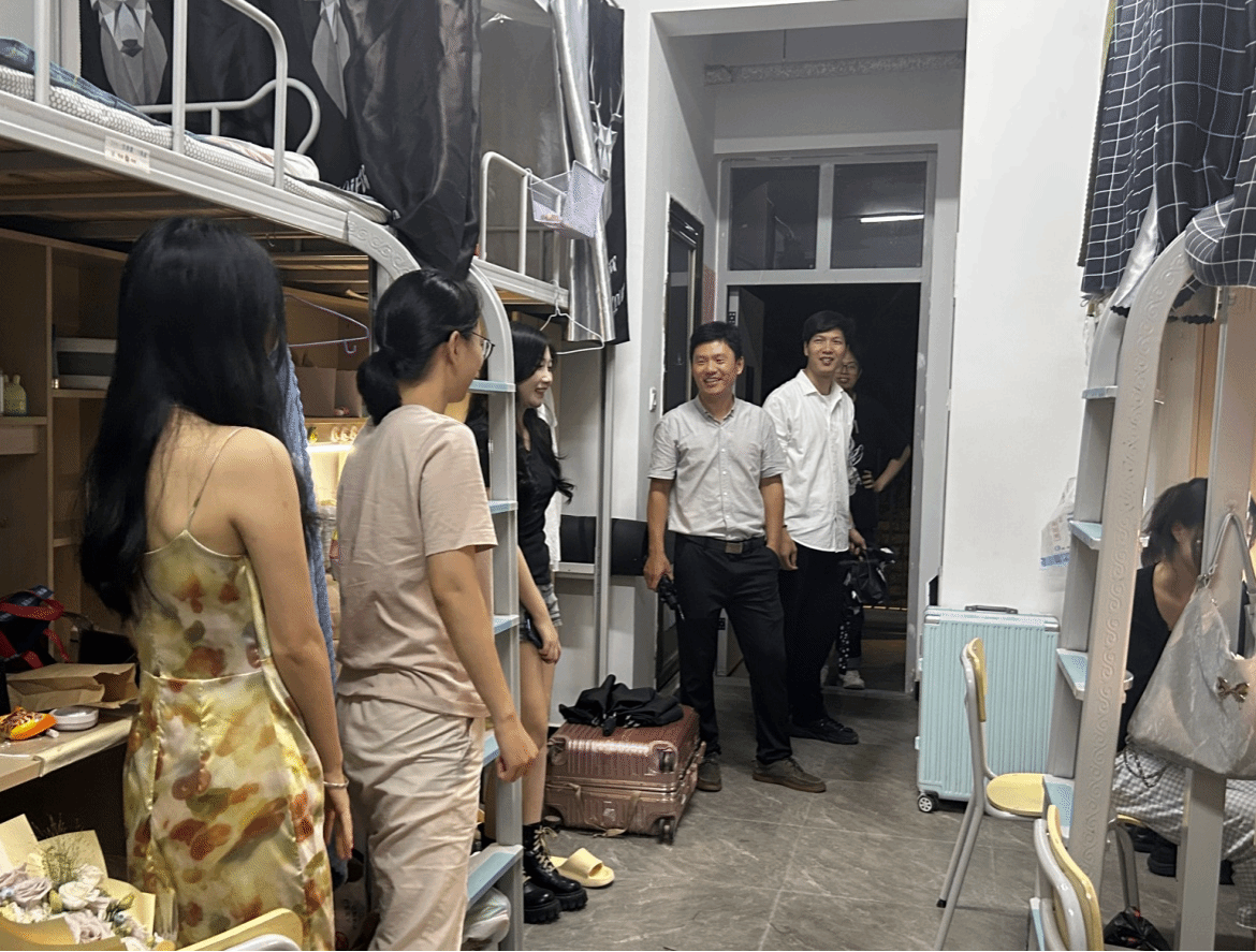为进一步做好2024届毕业生离校服务,切实推进毕业生安全、文明离校工作,6月18日晚,院党委副书记郑向峰、院党委副书记陈明生、学院全体辅导员开展2024届毕业生宿舍走访工作,为即将踏上人生新旅途的毕业生们送去关怀与祝福。