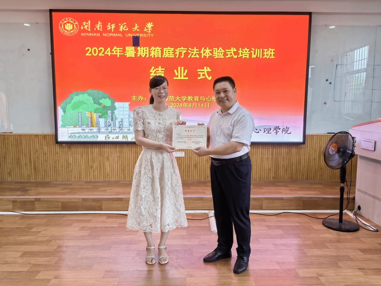 8月12日至14日我院委派刘香华、许小凤、曾欣虹三位教师参加闽南师范大学教育与心理学院2024年暑期箱庭疗法体验式公益培训班。