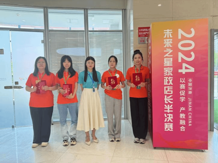 2024年8月6日,由中国商业联合会商业职业技能鉴定指导中心主办、中国老教授协会家政学与家政产业发展专业委员会与北京中盟云创教育科技有限公司(互联互家)联合承办的第九届全国商业服务业优秀店长大赛“未来之星家政店长”院校学生赛半决赛在济南阳光大姐示范基地举行,我院由李奕老师带队,4名家政学专业学生参赛。半决赛从笔试和实操两个方面进行综合考核,经过激烈的竞争,我院学子22级谢佳琛荣获三等奖,将进入全国总决赛;22级王诗雨、23级郑楚悦、23级游欣怡荣获优胜奖。指导老师为曾欣虹、张蕴、刘燕清。