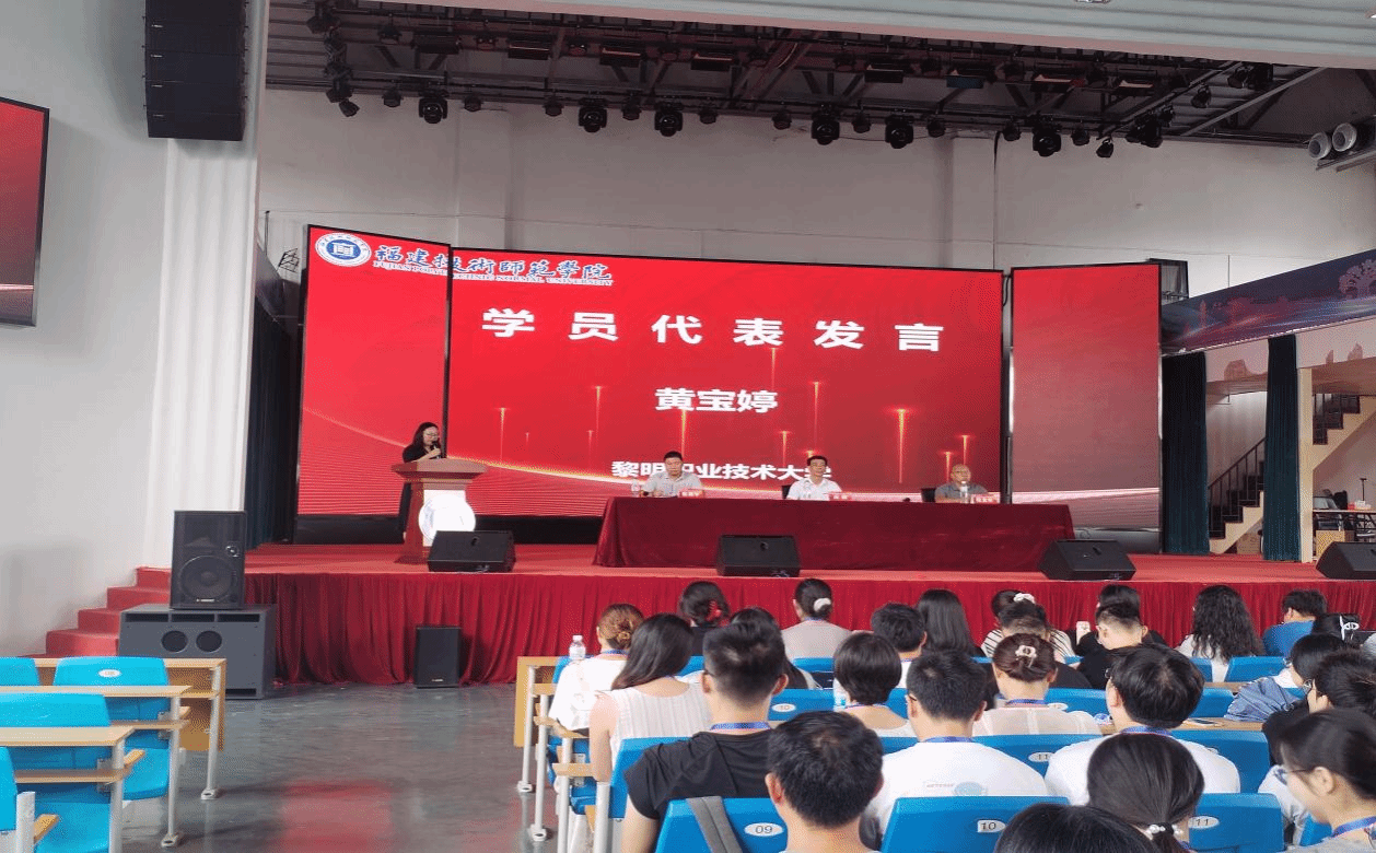 来自黎明职业技术大学的黄宝婷老师作为学员代表进行发言,她对学校给予培训支持以及辛勤付出的领导、老师们表示衷心感谢;表示将以这次培训为契机,努力学习,不断进取,尽快完成从学生到教师的角色转变。