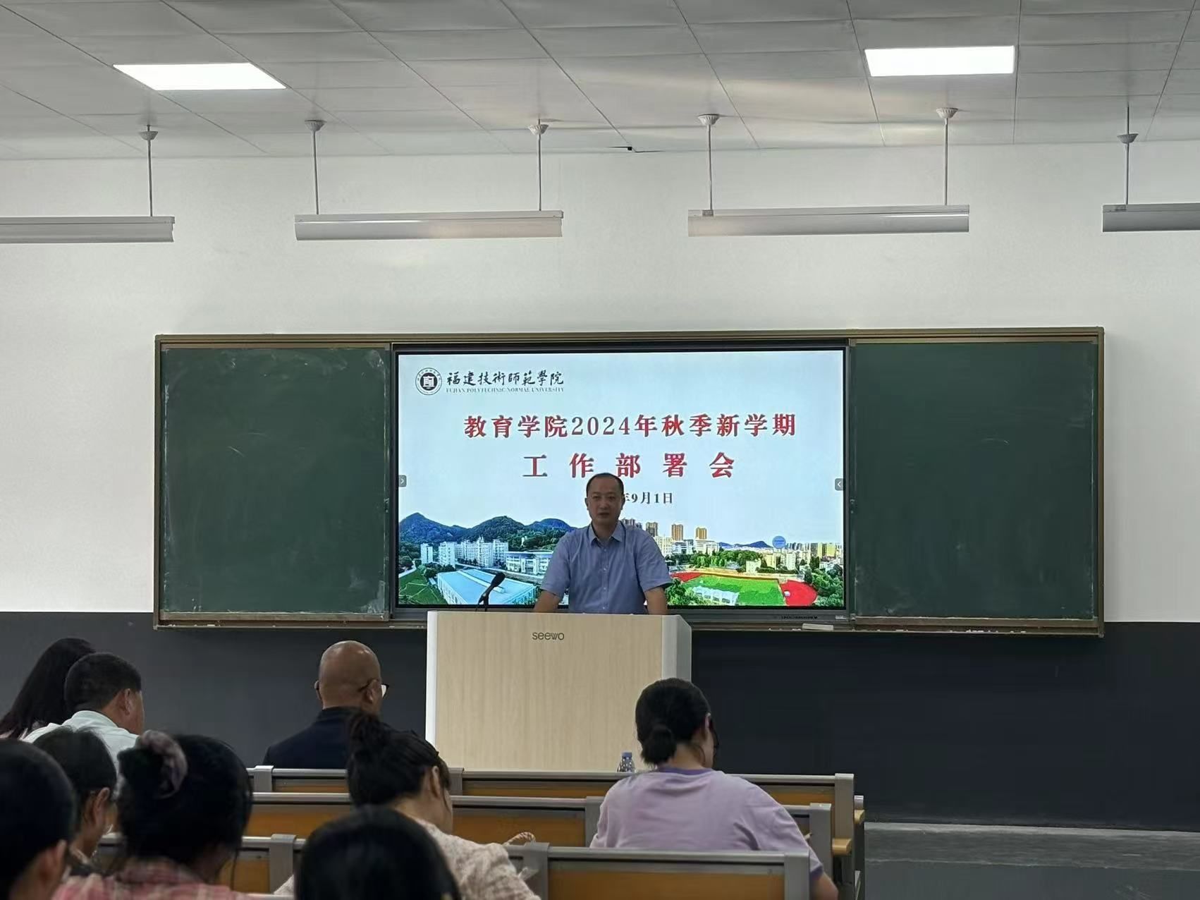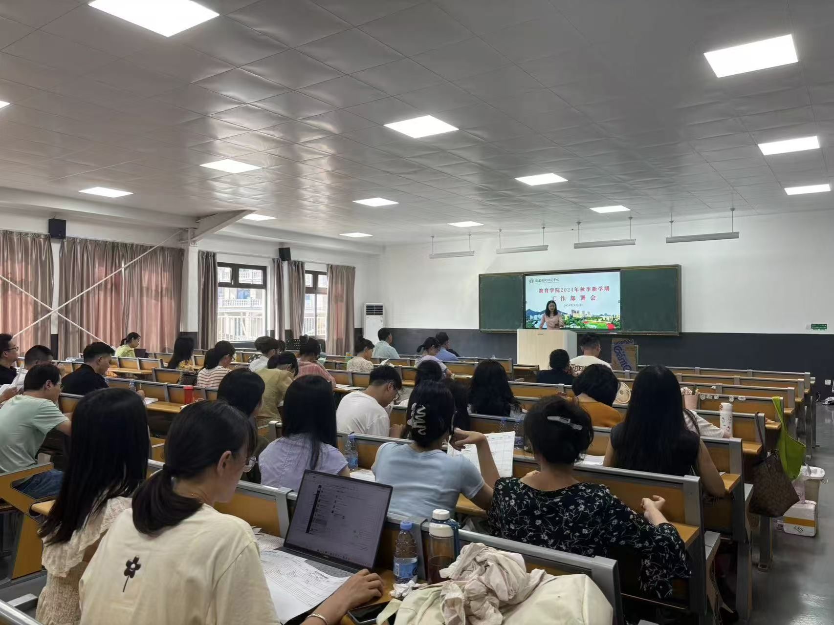 9月1日下午,我院在五马校区弘毅苑召开2024年秋季新学期工作部署会,会议由副院长(主持工作)陈妮娅主持,全院教职员工参加了本次会议。
