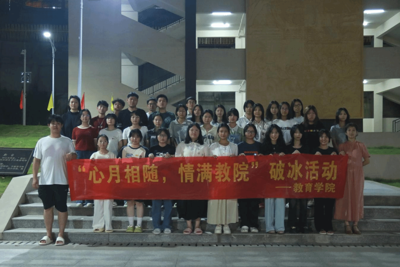 中秋佳节,情意浓浓。为弘扬中华优秀传统文化,增强2024级新生班级凝聚力,我院于9月13日晚在赫曦广场、素心食堂举办“心月相随 情满教院”新生中秋破冰活动。活动由我院团委实践拓展部组织开展,2024级应用心理学、家政学专业全体新生参与活动。