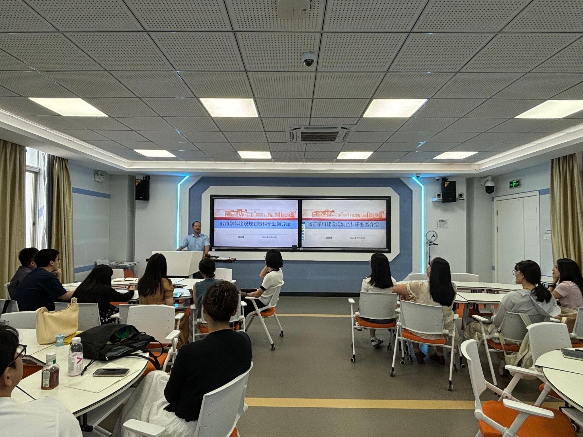 会上,胡剑锋副院长作《职业教育特色学科建设暨科研业务介绍》专题讲座,围绕教育学院学科专业及师资情况、学校科研评价体系、科研项目申报注意事项及建议,做好2025年高级别科研项目申报动员和任务部署工作,并结合我校历年科研项目申报的实践经验,向教师介绍科研项目选题的方法、技巧和注意事项,鼓励博士们积极围绕职业技术教育申报和参与科研项目,在实践中锻炼和提升科研能力。