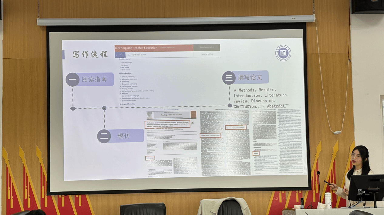 谢婉琳老师结合自身科研经历,深入浅出地分享了科研方法和工具、论文选题、写作流程、以及投稿注意事项等内容。互动环节,谢婉琳老师与在场教师进行了热烈交流,解答了在场教师提出的问题和困惑。她的耐心解答和真诚分享赢得了在场教师的高度评价。