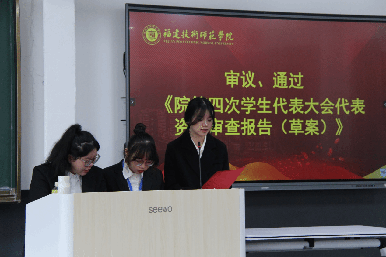 大会听取和审议了上一届学生会的工作报告,审议并通过了《院第四次学生代表大会监票人、计票人名单(草案)》《院第四届学生会主席团候选人名单(草案)》《院第四次学生代表大会选举办法(草案)》。学生代表们投出选票,监票人、计票人当场计票和唱票,最终选举产生新一届学生会主席团。大会在激昂的共青团团歌中落下帷幕。