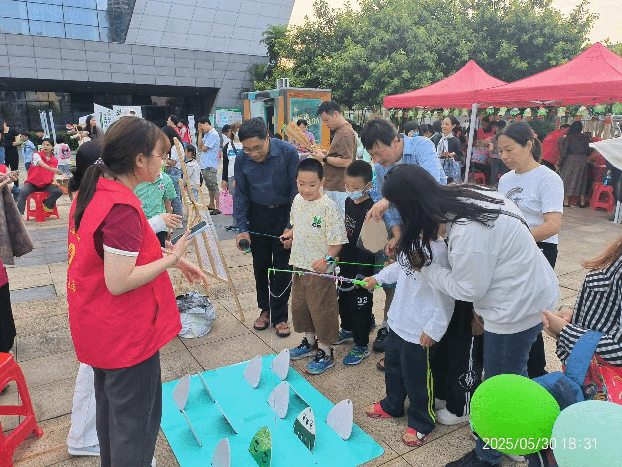 游戏互动区欢声雷动:投壶箭筒叮当作响,“射五毒”寄托安康祈愿,灵巧的“夹蜜豆”和妙趣横生的“钓粽子”比赛吸引亲子家庭踊跃参与,童趣之中渗透古老仪式的文化基因。