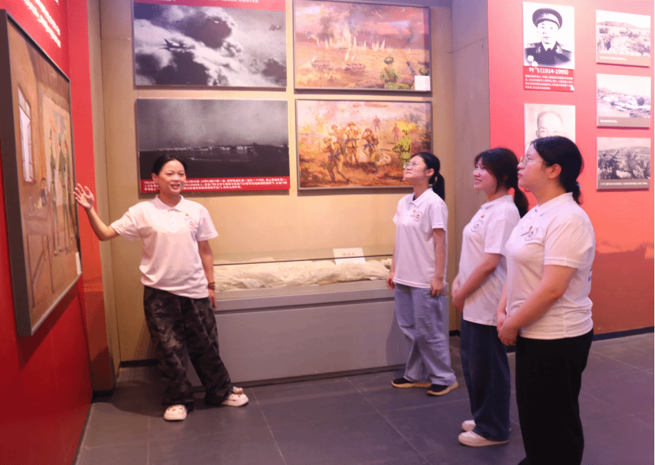 在感悟谷公精神之际,实践队积极发挥专业所长,将知识转化为乡村振兴的实践力量,为东山发展贡献青春力量。7月7日,七七事变纪念日当天,实践队首站前往东山保卫战文化园。踏入园内,庄重肃穆之感油然而生,队员们怀着敬仰之情,认真瞻仰每一处遗迹、每一件文物。经讲解员讲述,大家仿若置身战火岁月,深切体会到东山人民保家卫国的英勇无畏。这段悲壮历史,更坚定了队员们传承红色基因、厚植爱国情怀的信念。