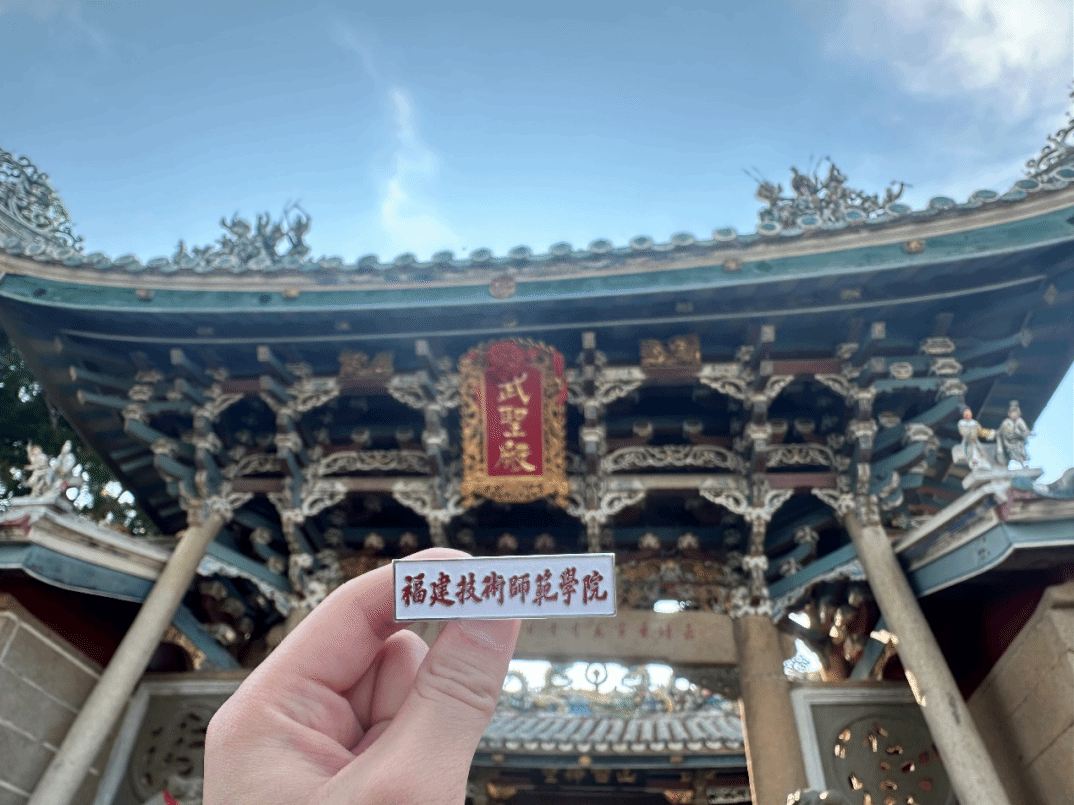走进东山关帝庙,古朴典雅的建筑风格与浓厚的宗教氛围瞬间吸引了队员们。作为闽台地区重要的宗教场所,关帝庙香火鼎盛,关帝信仰在闽台两地源远流长,关帝被视为忠义、诚信的化身,深受两岸同胞尊崇。这里不仅是宗教信仰中心,更是闽台文化交流的重要平台,每年众多台湾信众前来朝拜,关帝文化成为增进两岸情感认同与文化交流的精神寄托。深入庙内,队员们惊喜发现,关帝庙的建筑装饰与内部陈设巧妙融入金木雕、木雕、剪瓷雕等非遗技艺。这些非遗技艺在关帝庙中交相辉映,彰显闽台文化同根同源,在促进闽台融合、推动爱国主义教育中价值独特,是东山文化宝库的璀璨明珠。