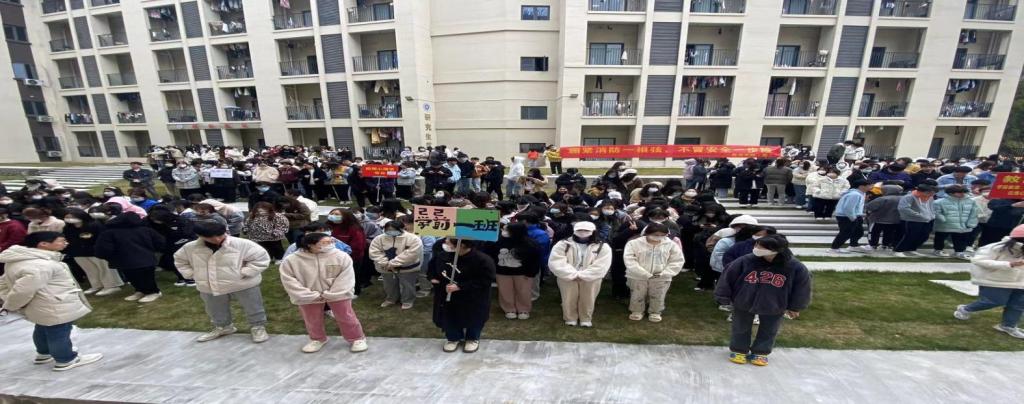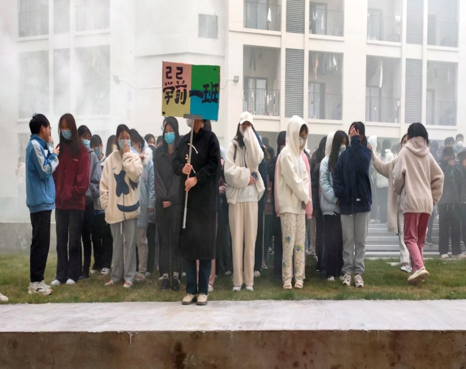 紧随着警铃声响起,白色预警烟雾燃起,在宿舍内营造了“火灾现场”的氛围。各工作小组、各点位的工作人员迅速到位,各同学反应及时,以俯身快步方式离开宿舍楼,在疏散联络组有序的组织下迅速撤离至安全地带。