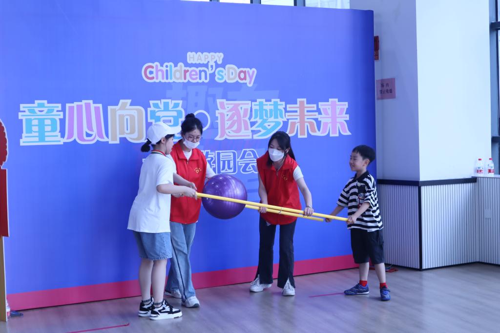 在游园会中,学生志愿者们以“集章通关”为主线,开展了“同心协力”“手足情深”等游戏环节。在加油声和欢声笑语中,学生志愿者们与青少年宫孩子们一同度过了一个愉快而又难忘的六一儿童节。