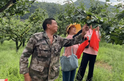 在大源村刘虎堂果园,向果农学习采摘和分拣技术,帮助果农采摘黄桃和黄花梨,体验劳动和收获的喜悦。