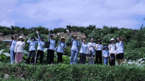 在世界上最大的梯田莲海——谢马苏梯田莲海中。队员们漫步田间,置身莲花丛中,实地了解建宁特色产业“建莲”。