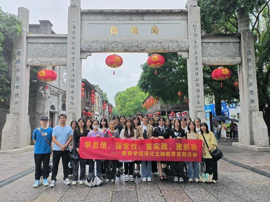 为深入开展学习贯彻习近平新时代中国特色社会主义思想主题教育,学习领会习近平总书记来闽考察重要讲话精神,进一步提升青年学生的民族自豪感和担当民族复兴大任的使命感和责任感,5月7日上午,我院学生第一、第二党支部以及团学干部代表在福州市三坊七巷联合开展“寻足迹、悟思想、铸忠魂、担使命”主题实践活动。学院团委副书记陈浩源参与本次活动。