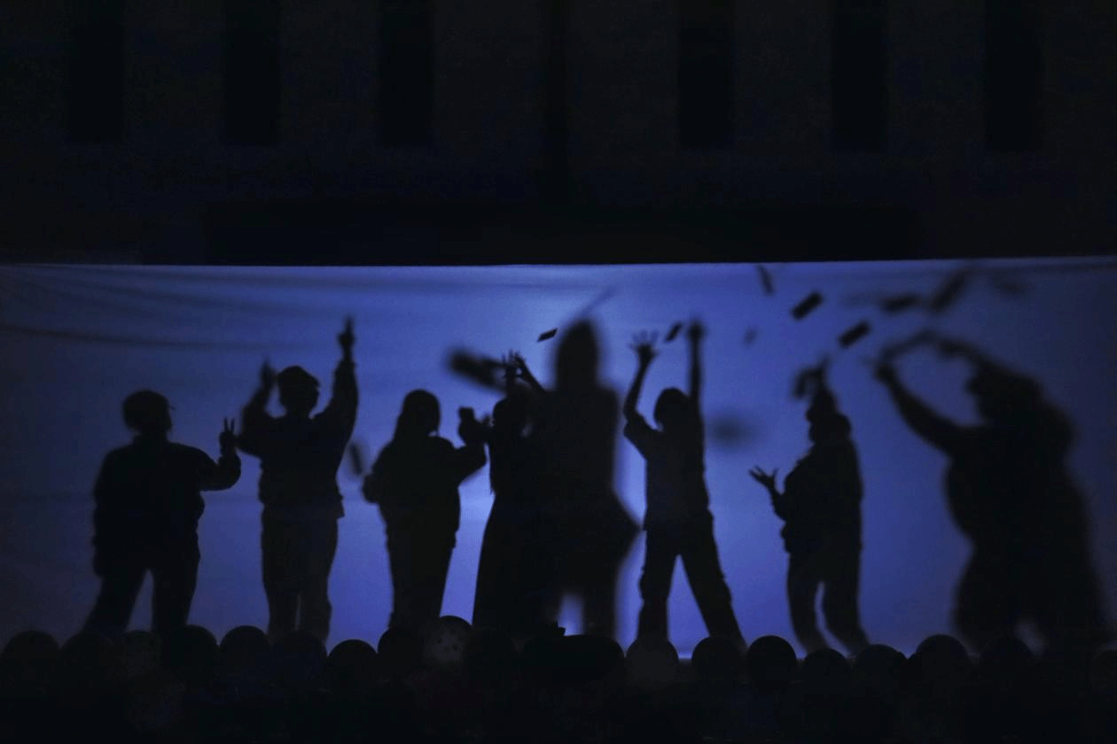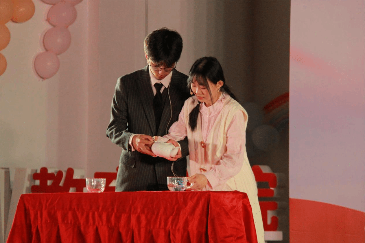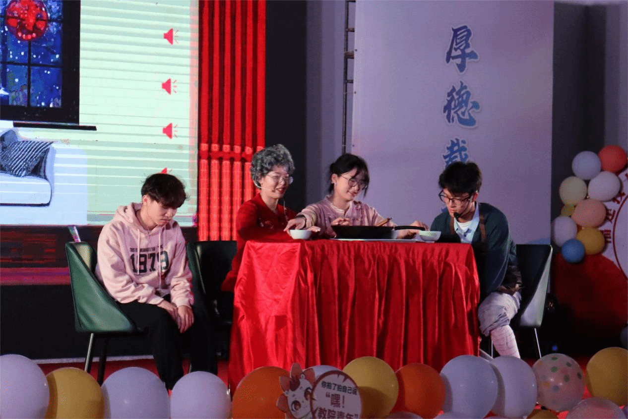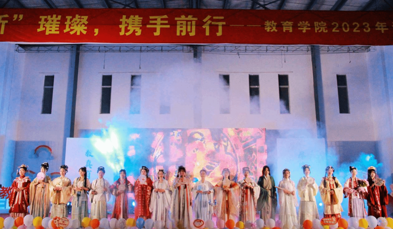 伴随音乐响起,院艺术团带来的开场舞爵士瞬间点燃全场。观众跟随着律动,女孩们展现飞扬青春,迎新晚会由此拉开了帷幕。情景剧《少爷和小姐》以幽默风趣的台词,生动活泼的表演,让观众共同陶醉在这部作品所营造的欢乐氛围中,携手见证少爷与小姐的美好爱情故事;《欢迎来到00年代》舞者们的舞蹈伴随着童年的音乐跳起,令观众在欢乐的气氛中仿佛又回到童年和伙伴一同观看动画片的旧日时光;汉服是悠悠华夏千年古韵的沉淀留香,《汉服走秀》中姑娘们精彩的演绎让观众在饱享视觉盛宴的同时,仿佛一梦千年,又回到了当初青砖小巷,烟雨霓裳的华美时代;影子秀《孤注一掷》中,幕布上同学们的身姿与光影相交,用光影讲述着网络骗局的故事,提醒大家不要被欲望蒙蔽双眼,掉入陷阱;《民舞》的舞者们巧妙运用道具,技艺结合,衣袂随身形的旋转而摆动,舞姿蹁跹,让观众领略到了“美人舞如莲花旋,世人有眼应未见”;情景剧《等你回家》将父母对孩子朴实无华的舔犊之情悄无声息的融进了一个又一个的笑点,让同学们在欢声笑语中体悟父母对子女无私的爱; 《被子也疯狂》的表演者在舞台上跳跃着,传递快乐,带领我们释放天性,诠释青春的舞步。最后的大合唱用洋溢的热情点燃舞台,让青春的诗行在舞台光影中执笔,一同唱响教院梦,呼唤同学们携手跨越遥遥山海,共同奔赴下一场诗与远方。
