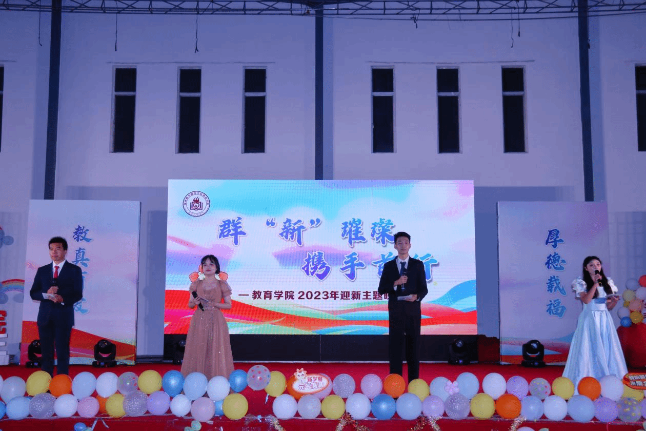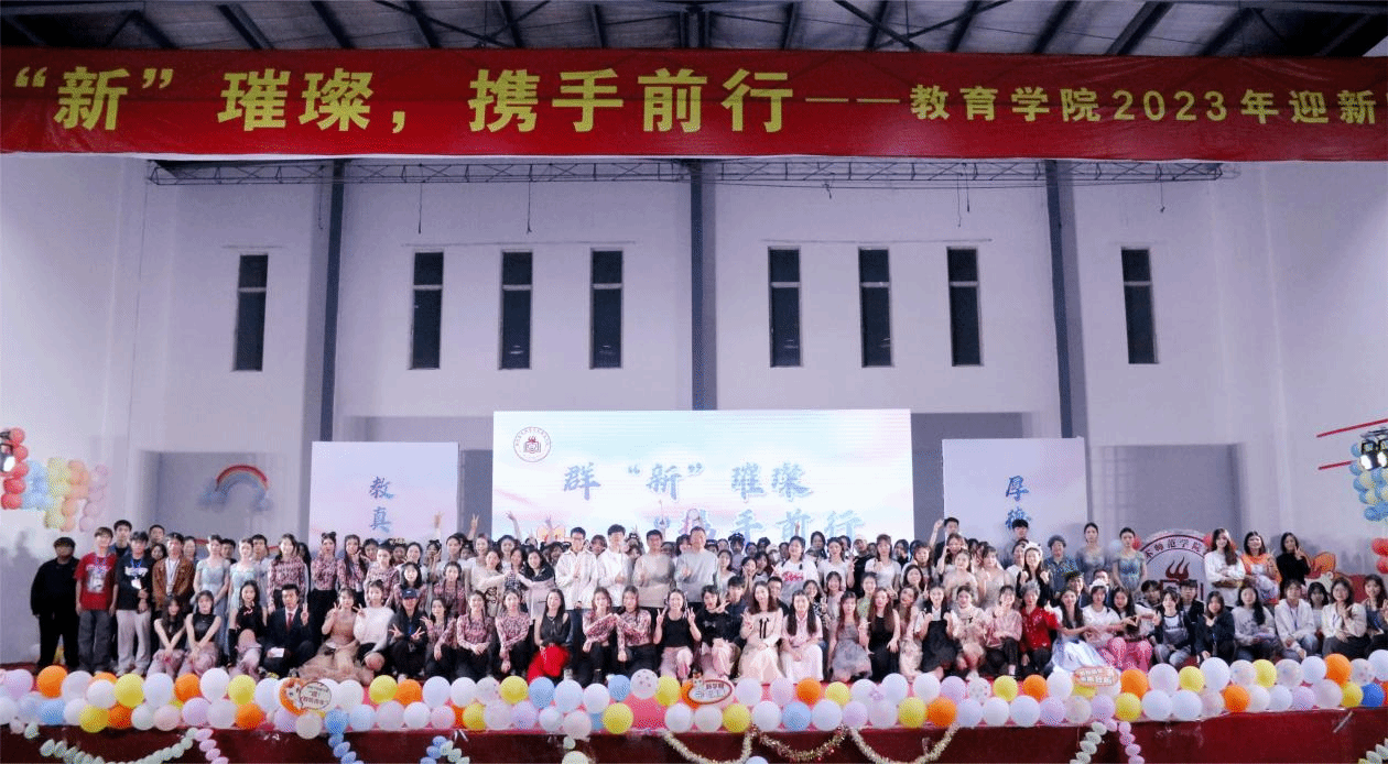 2023年11月11日晚,我院于五马山校区球类馆成功举办“群‘新’璀璨,携手前行”主题迎新晚会。学院领导郑向峰、胡剑锋,各年级辅导员,教师代表以及2023级全体新生共同观看了演出。