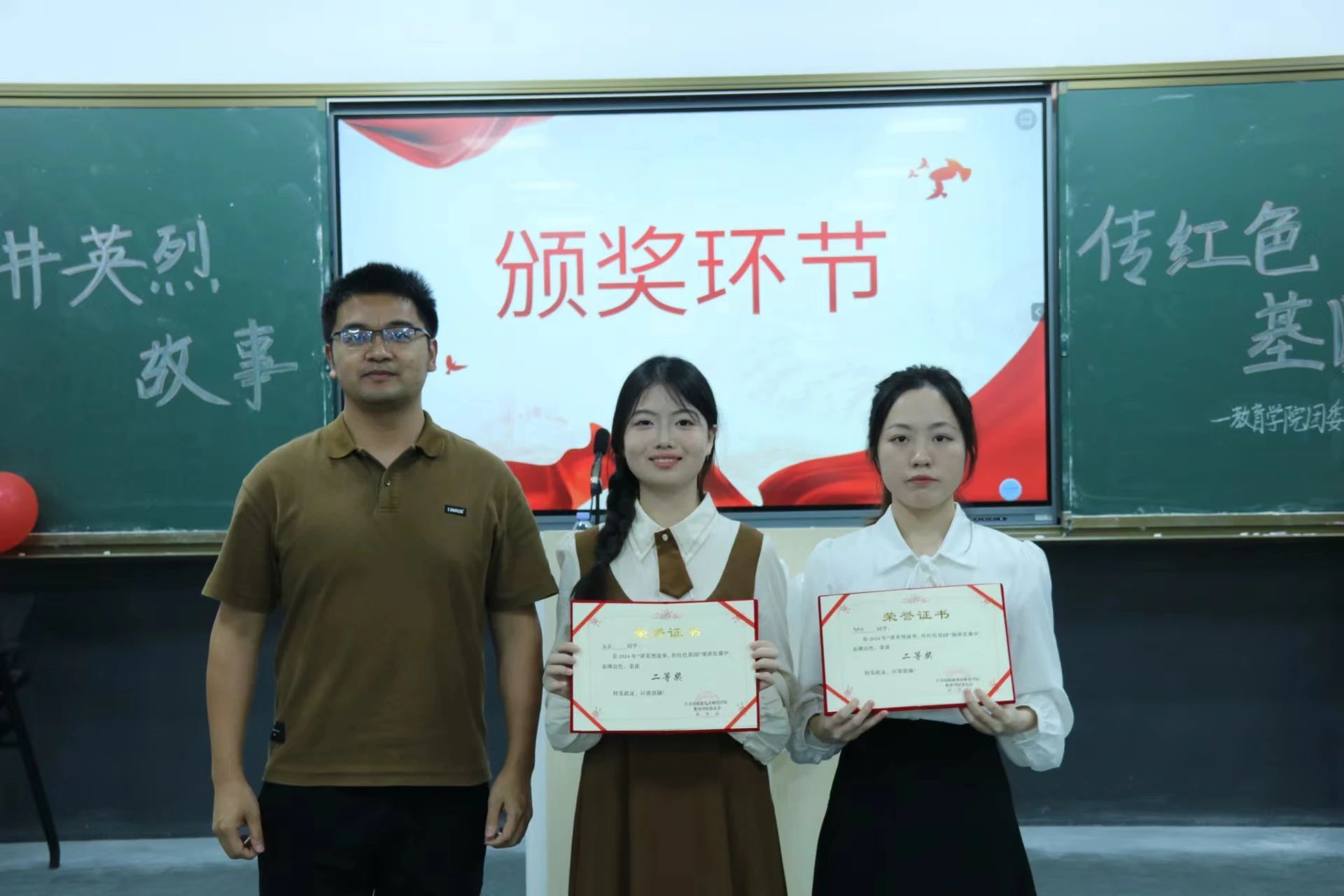 最终,评委们根据选手的表现,评选出了一、二、三等奖以及优秀奖,最后公布获奖名单,评委老师为其颁奖并同参赛选手合影留念。获奖名单如下: