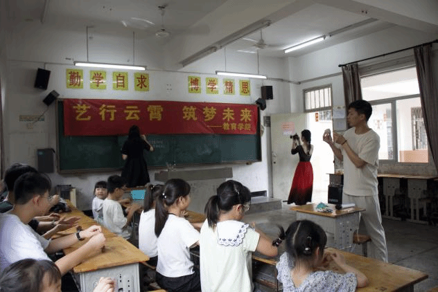 为深入学习贯彻习近平新时代中国特色社会主义思想,引导和帮助广大青年学生把专业学习和党纪学习教育成效转化为助力乡村振兴的青春力量。近日,我院大学生“三下乡”暑期社会实践队前往漳州市云霄县开展以“艺行云霄,筑梦未来”为主题的社会实践活动。实践队以“三个一”系列实践活动为载体,依托实践队员扎实的专业技能和才艺,弘扬中华优秀传统文化,以实际行动推进党纪学习教育。