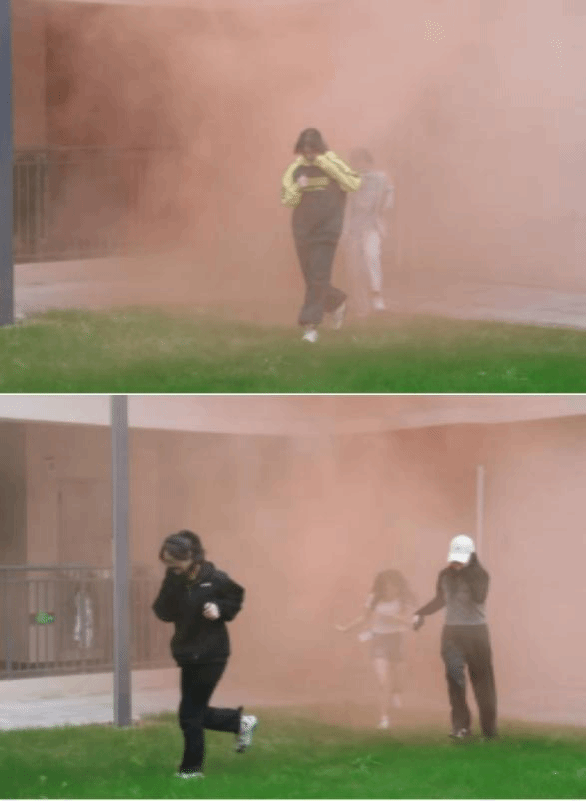 本次演练采用事先不告知确切时间,尽量模拟现实场景。演练开始前,学院团委结合实际认真制定了活动方案,明确职责要求。12点40分,伴随着刺耳的警报声及哨声响起,宿舍楼涌出滚滚浓烟,随即,同学们在辅导员及学生楼层长的组织下,用湿毛巾捂住口鼻,弯腰前行,快速、有序地从宿舍内到达指定疏散点,到达安全地带后,各宿舍舍长、副班长立即清点人员,并层层上报。4分钟内,全体同学全部安全疏散完毕。