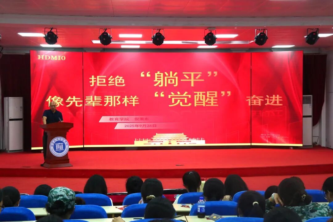 9月26日,我院党委副书记(主持工作)倪秉东为2025级新生举办“拒绝‘躺平’,像先辈那样‘觉醒’奋进”主题讲座,激励新生积极进取,肩负时代使命。
