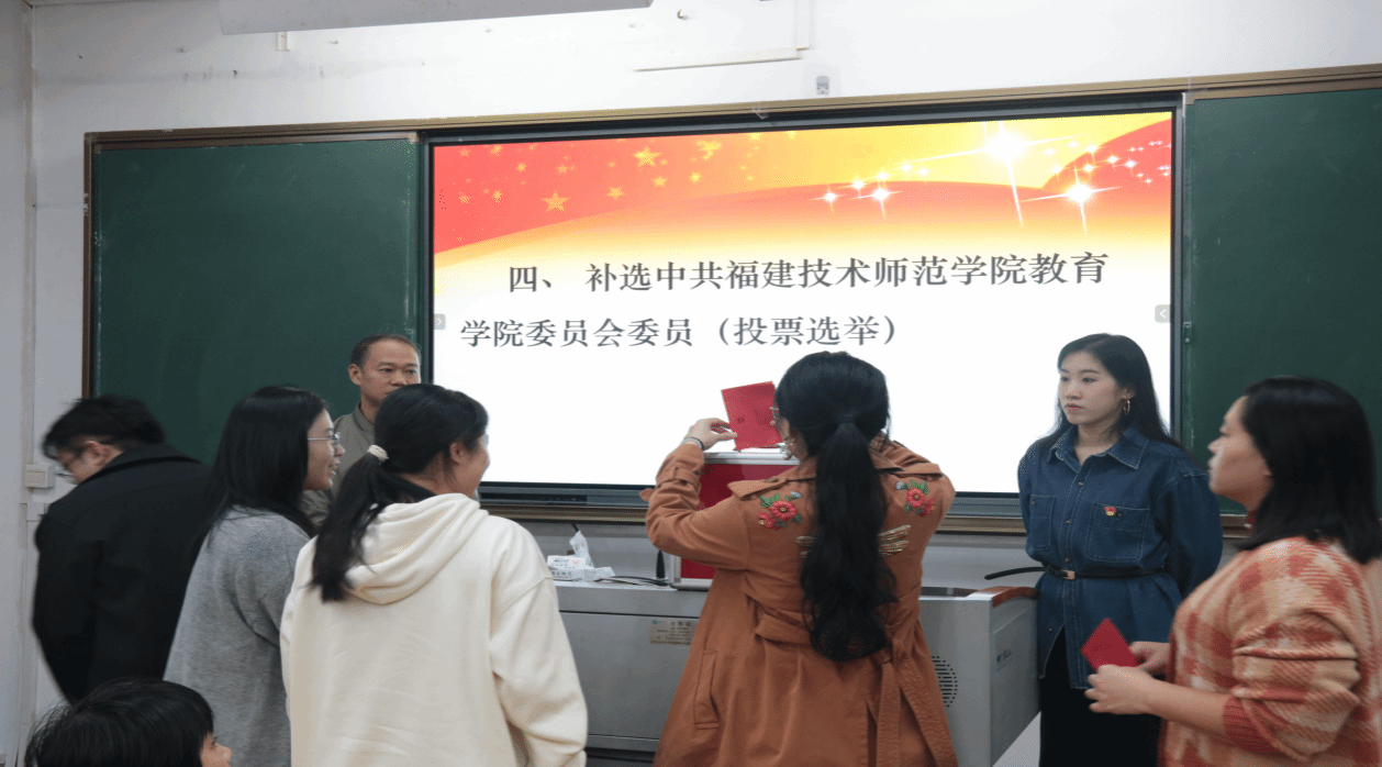 投票过程中,由监票人进行全程监督。整个流程组织有序、公平公正、操作规范。最后投票选举出郭海滨同志作为中共福建技术师范学院教育学院委员会委员。